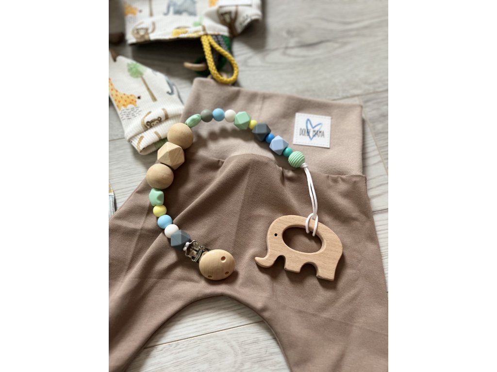 klip na dudlíček s dřevěnými a silikonovými komponenty