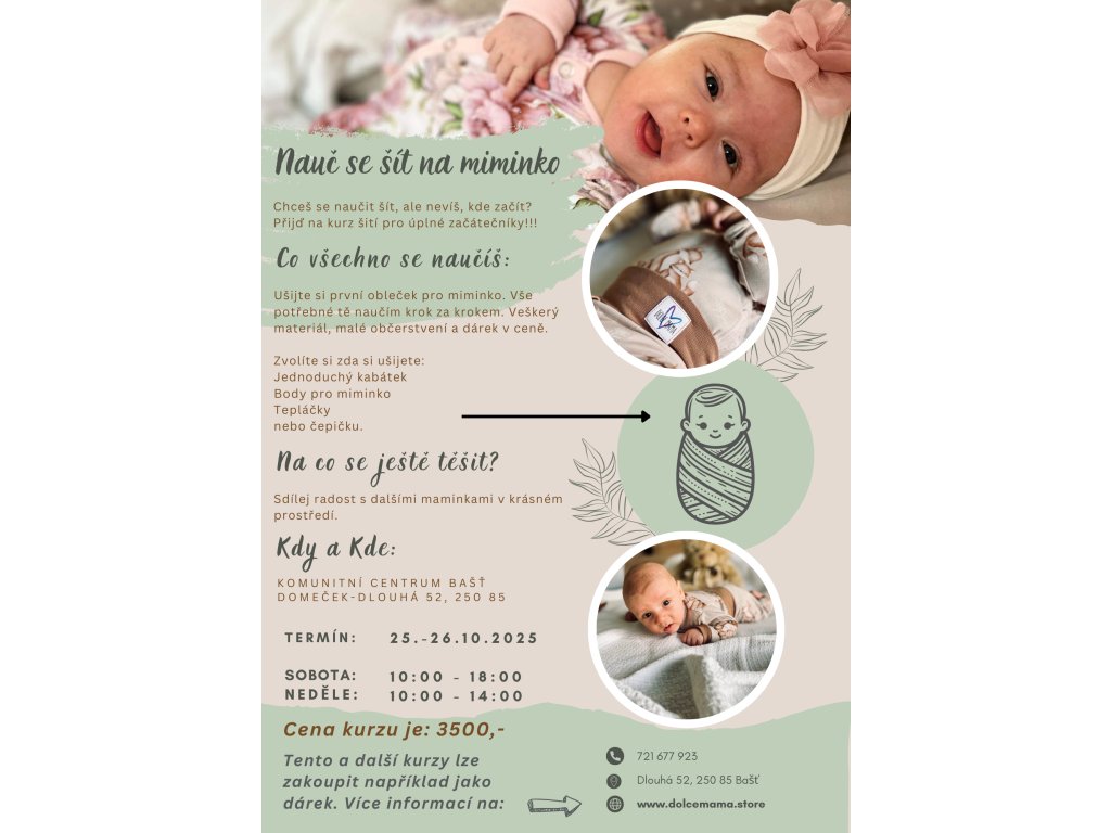 Ušij si první obleček pro miminko i bez předchozí zkušenosti. Dvoudenní kurz šití v Bašti – pro maminky, které chtějí tvořit.